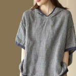 nameOriginal | Retro hooded design niche age-reducing plaid short sleeves |