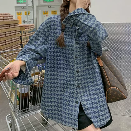 | nameOriginal | Retro houndstooth Korean style loose long sleeve denim shirt |