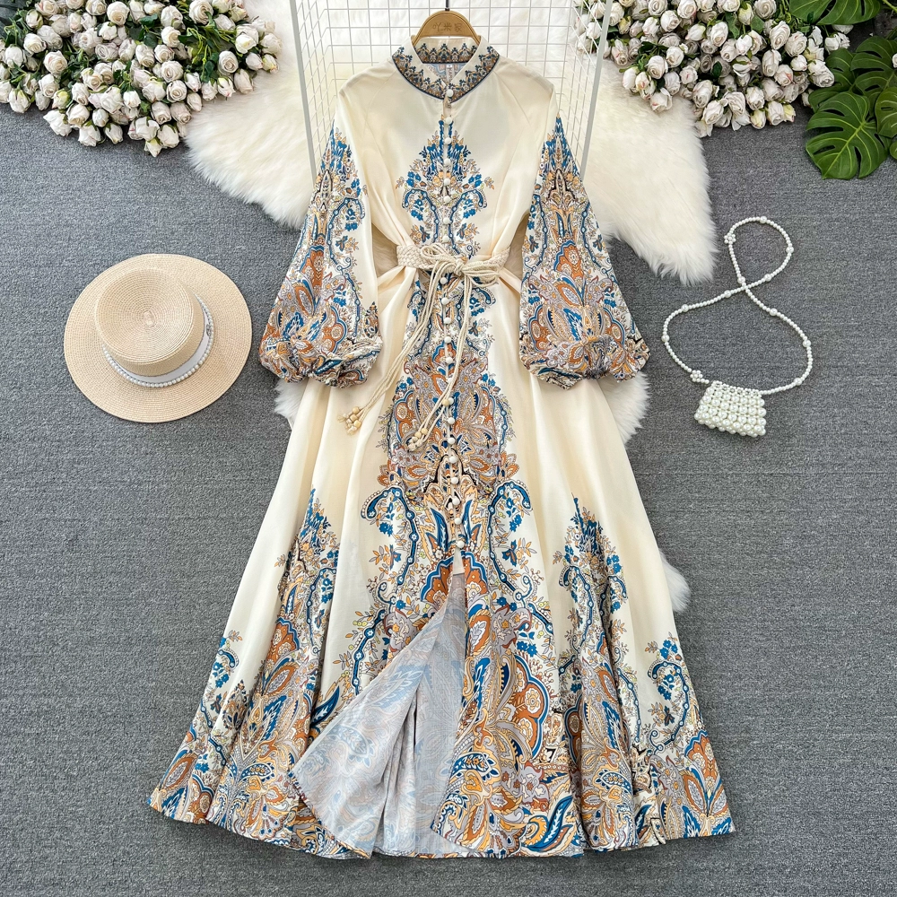 | nameOriginal | Retro lantern long sleeve stand collar elegant printed dress |