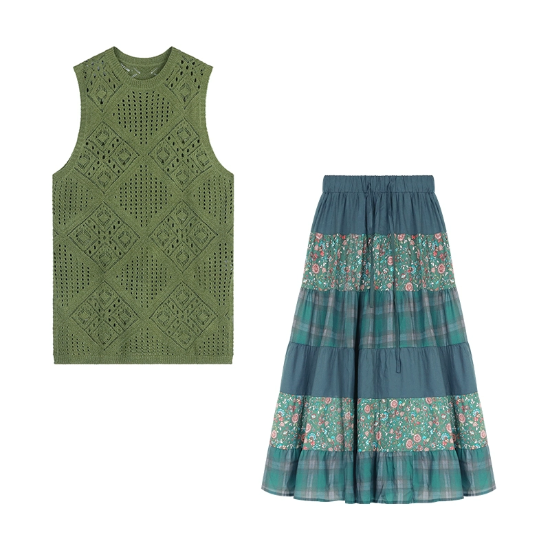 | nameOriginal | Retro layered hollow dress summer suit blouse |