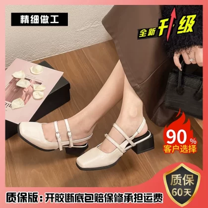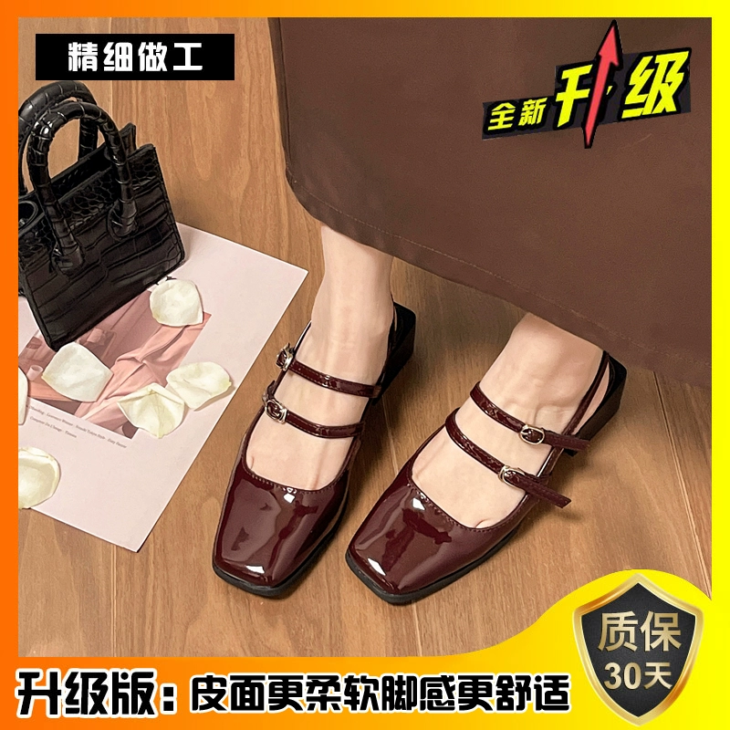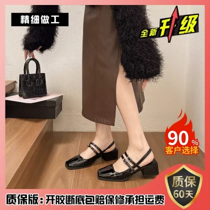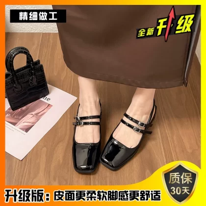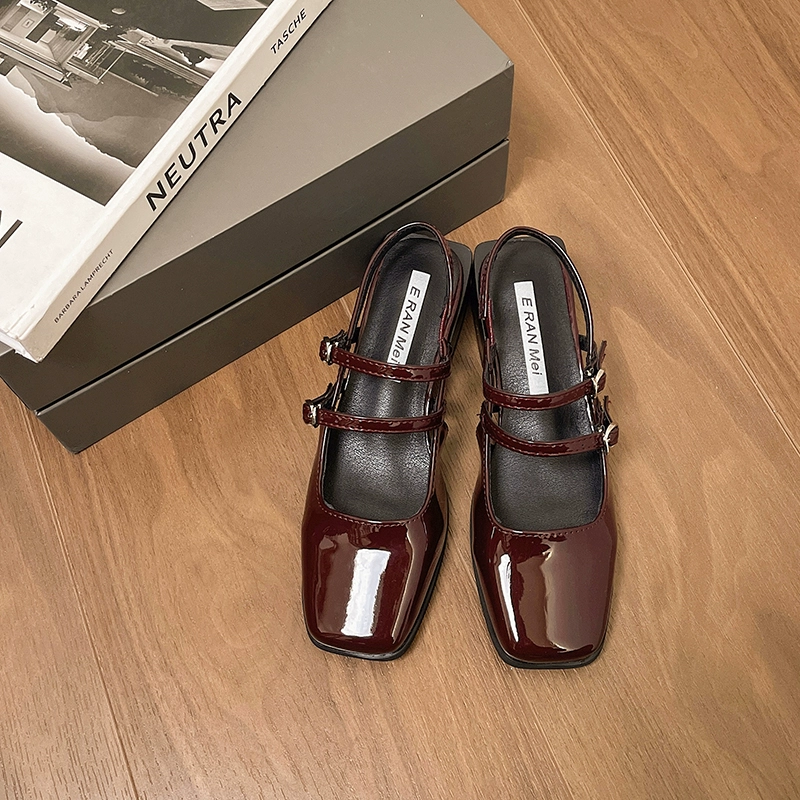 Retro medium thick heel, gentle and versatile toe-toe Mary Jane shoes