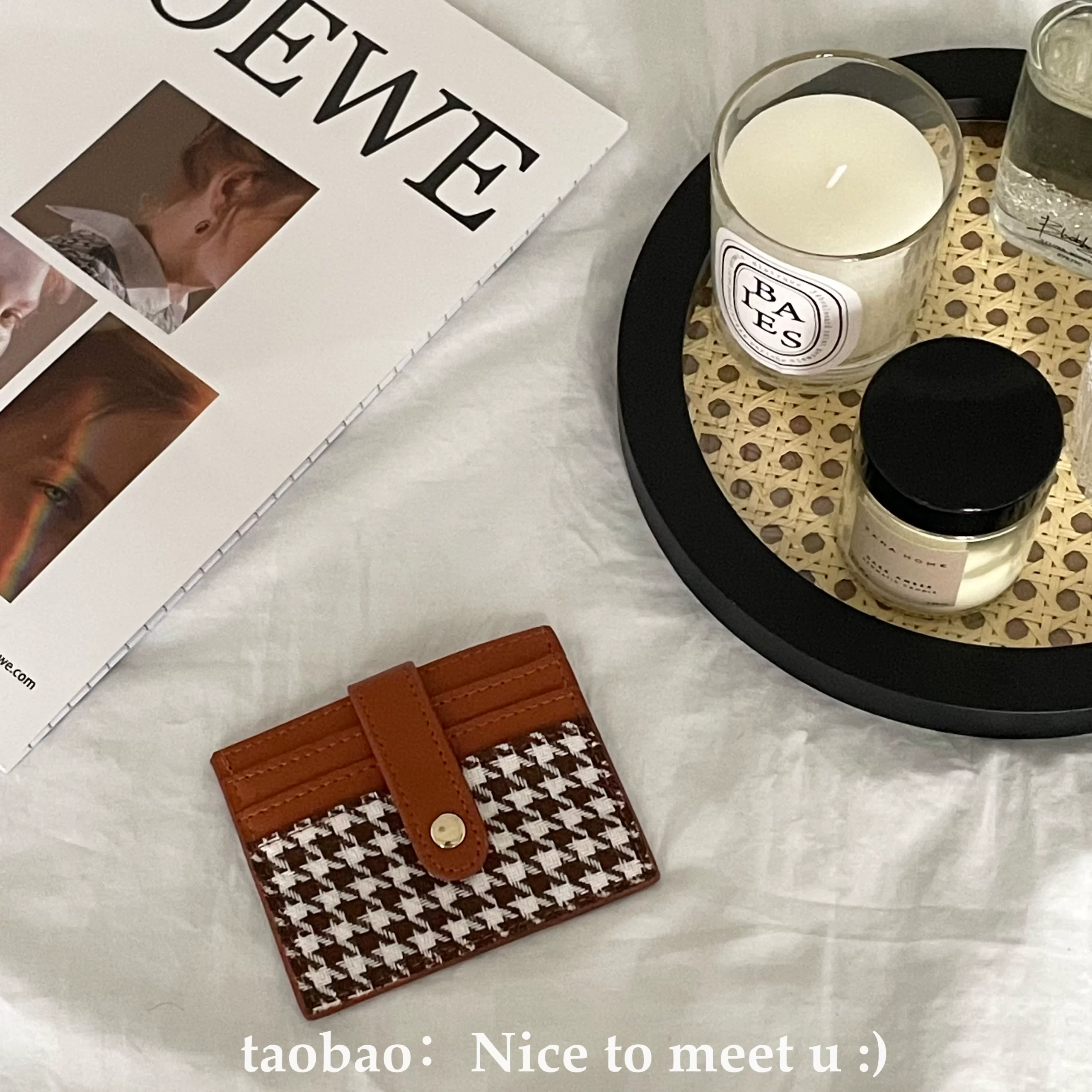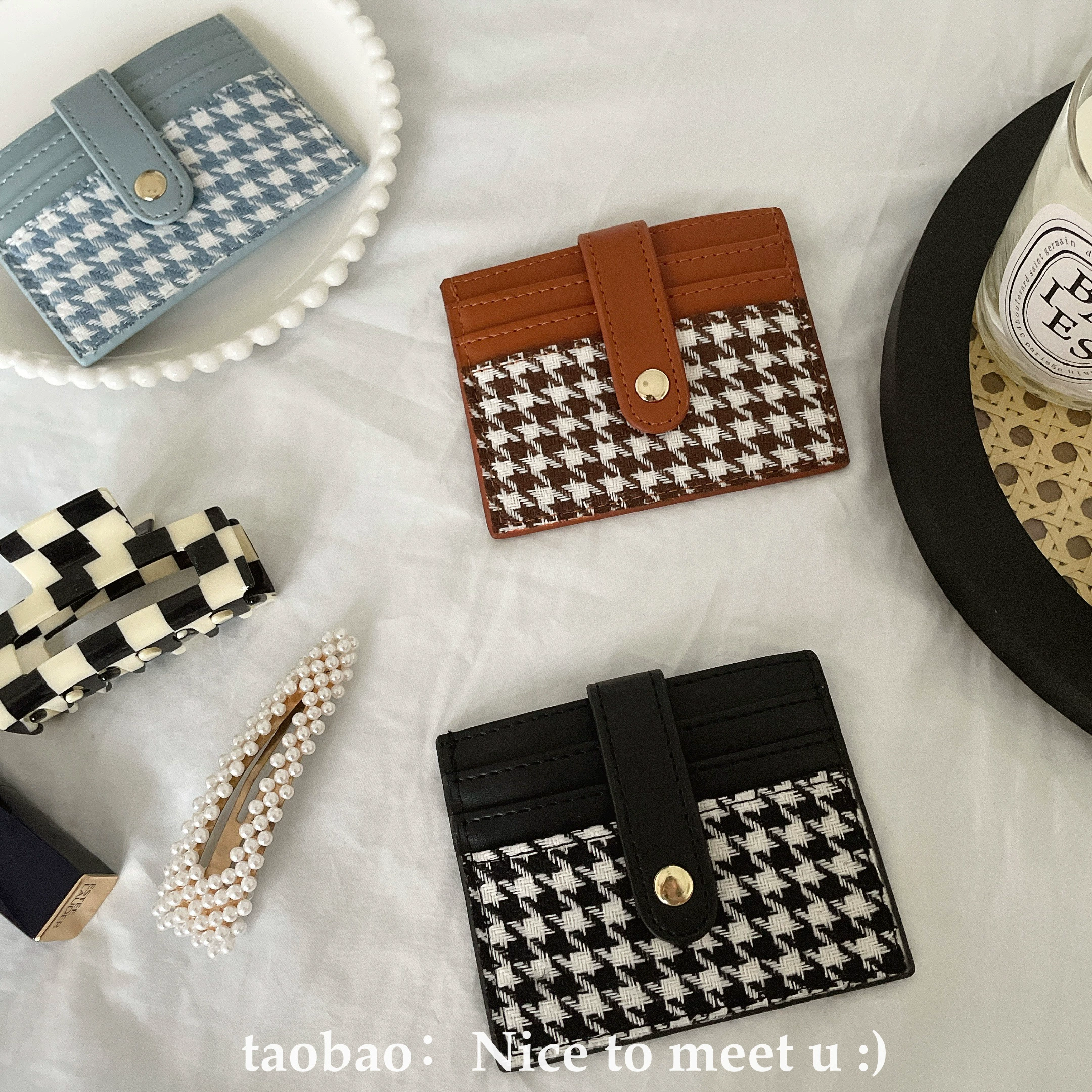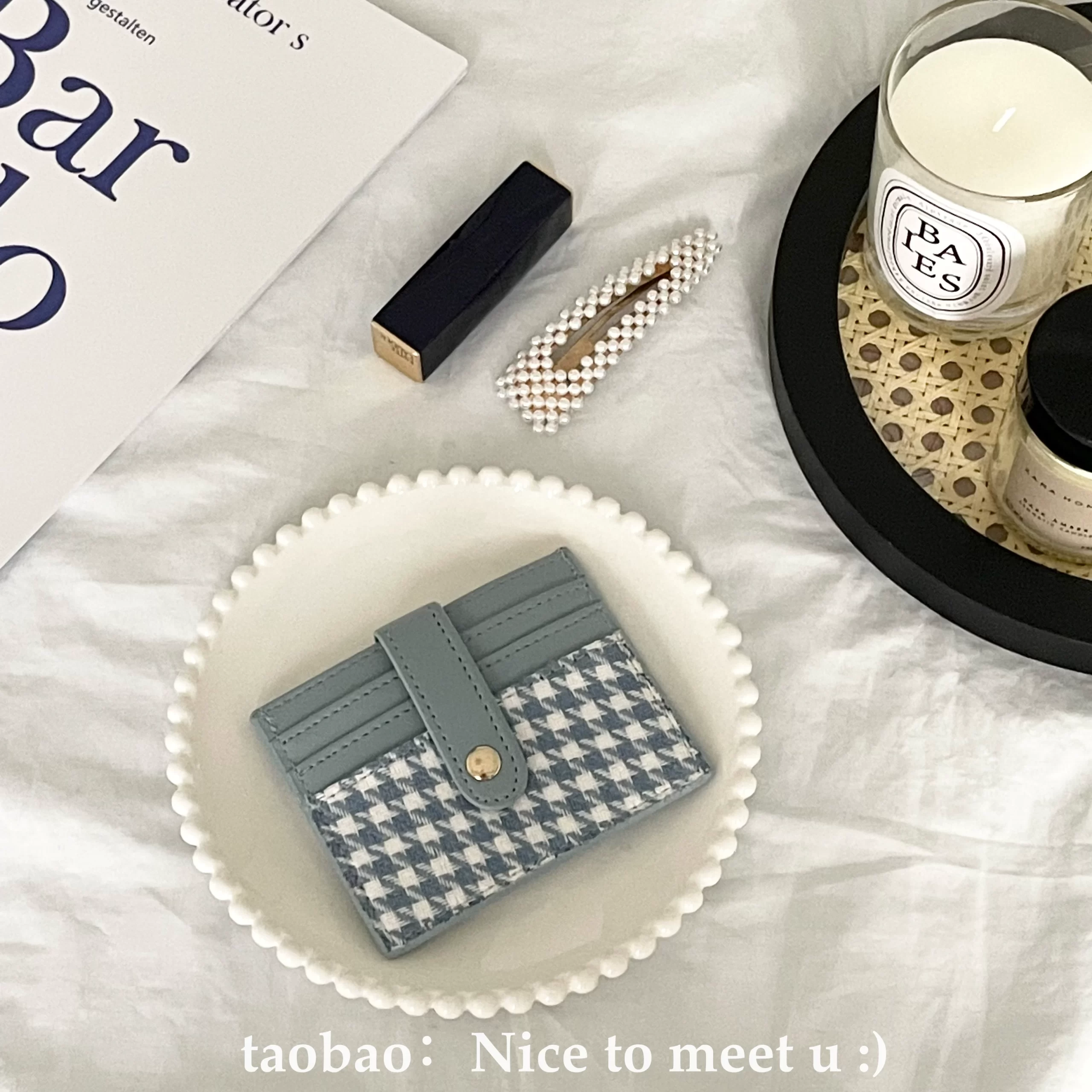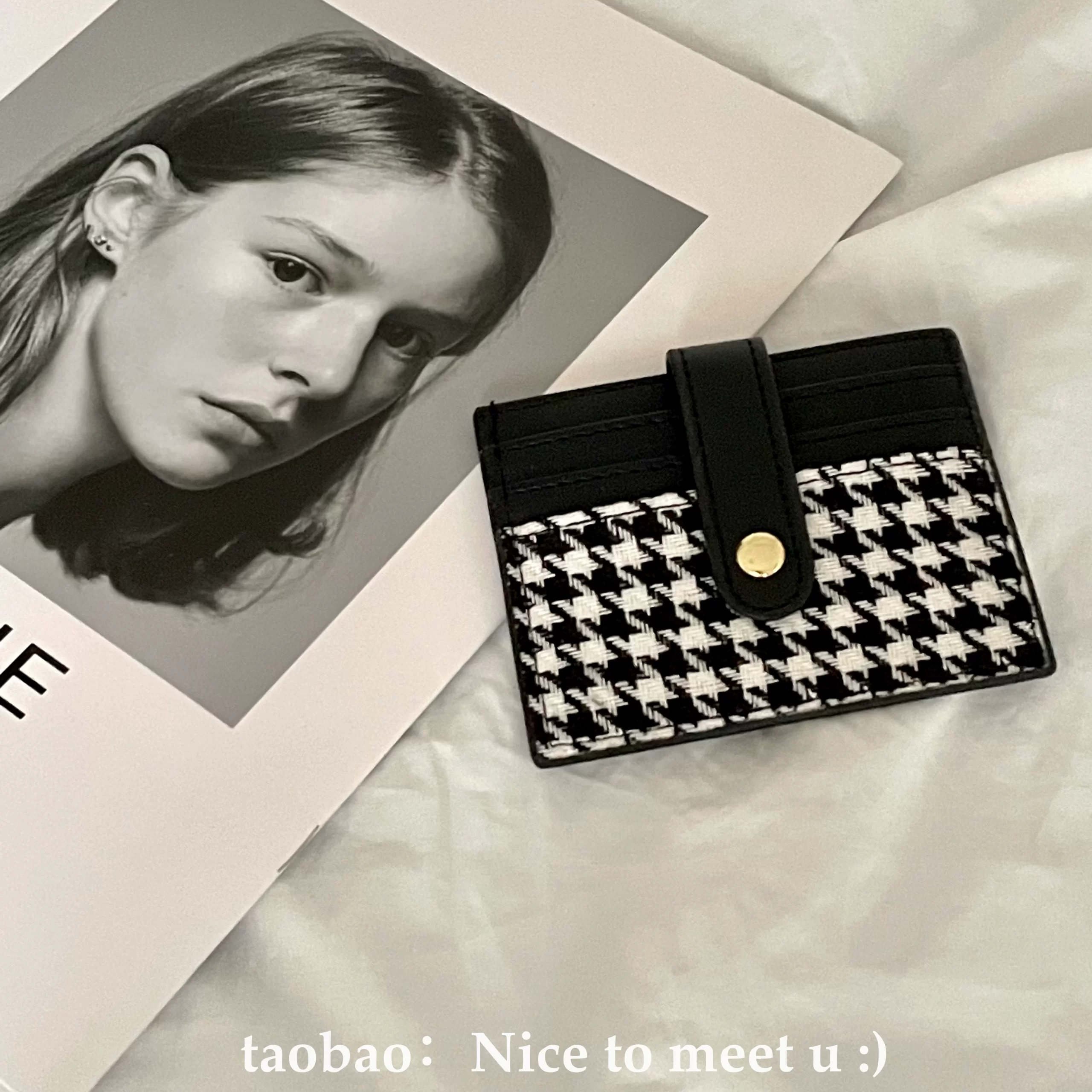 | nameOriginal | Retro niche houndstooth contrasting plaid card holder coin purse simple ultra-thin short wallet buckle card holder for women |