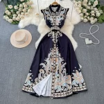 | nameOriginal | Retro palace style goddess model lady temperament single-breasted lapel printed dress elegant a-line long skirt |