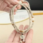 Retro Peace Mini Star and Moon Bodhi Bracelet Rosary Beads for Men and Women Wrist Jewelry Bracelet Halter Neck Pendant Necklace Accessories