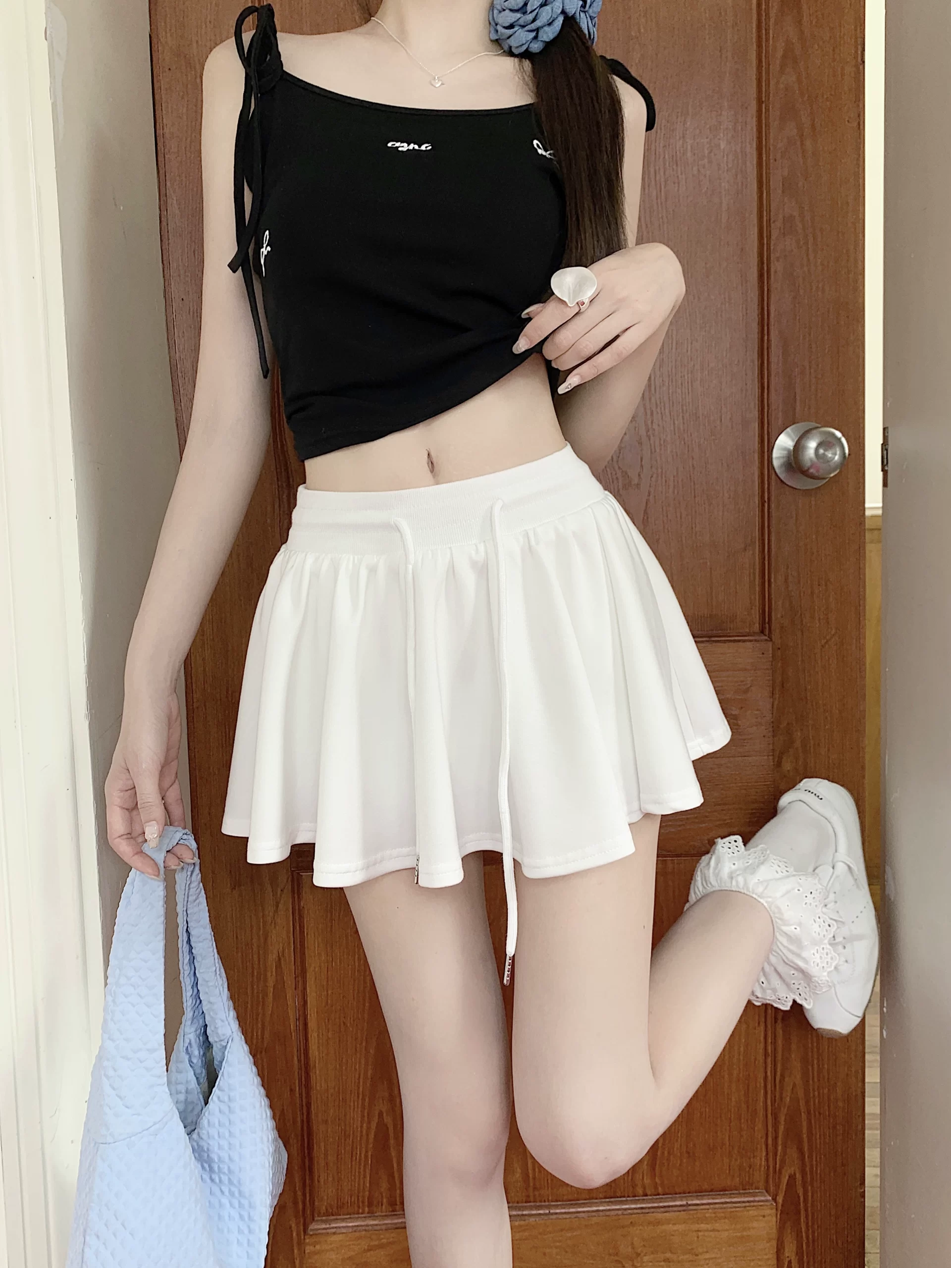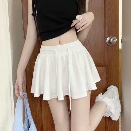 | nameOriginal | Retro petite anti-exposure A-line skirt with drawstring |
