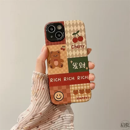 | nameOriginal | Retro plaid bear rabbit iphone14 mobile phone case suitable for Apple 13promax smoothly 12/11 fortune 14plus British style couple men and women new leather silicone dry |