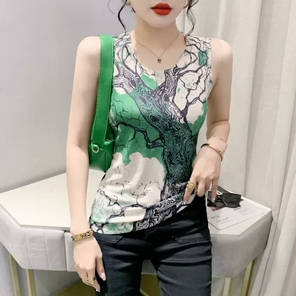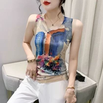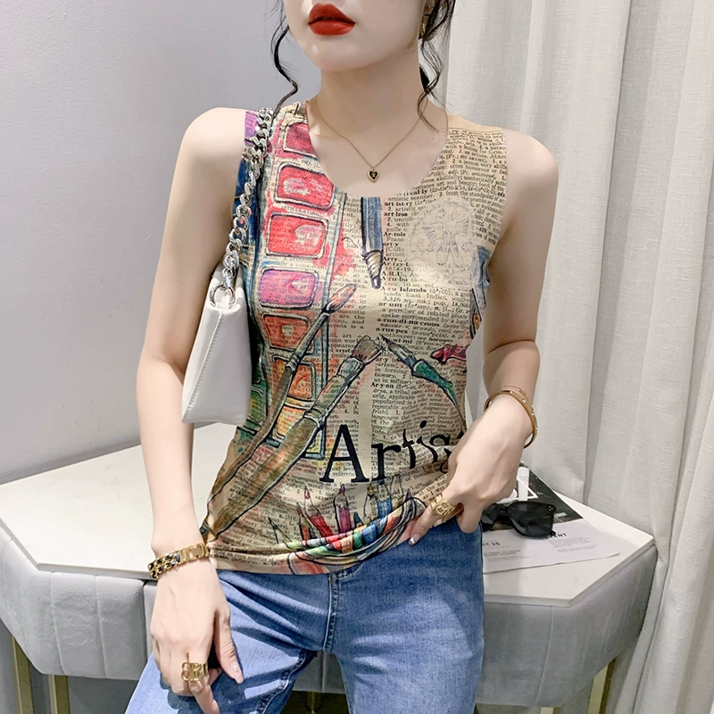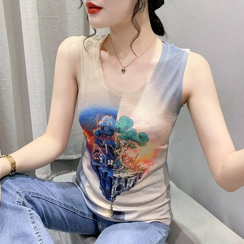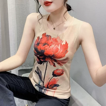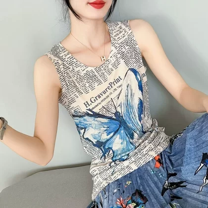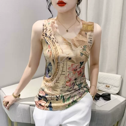 | nameOriginal | Retro printed small camisole women's summer new style outer wear foreign style inner wear slim fit back sleeveless bottoming top |
