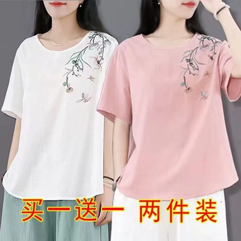 | nameOriginal | Retro pure cotton and linen short-sleeved ethnic style embroidery art |