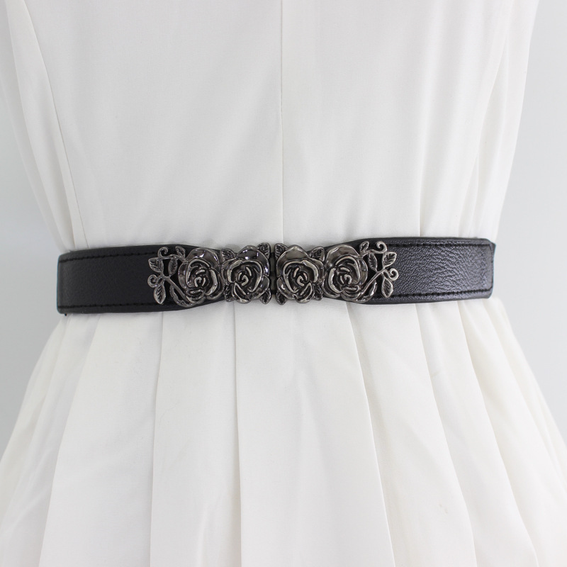 | nameOriginal | Retro rose buckle elastic belt female decorative dress sweater waist thin elastic waist four-color optional |