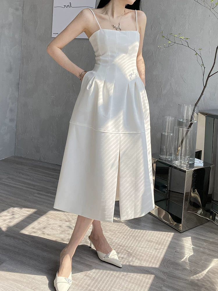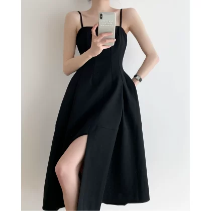 | nameOriginal | Retro slit little black dress with high waist straps |
