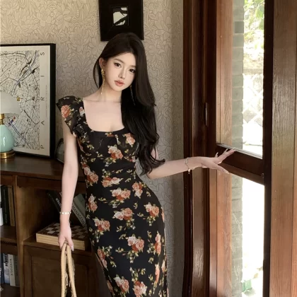| nameOriginal | Retro small flying sleeve summer slim chiffon dress |