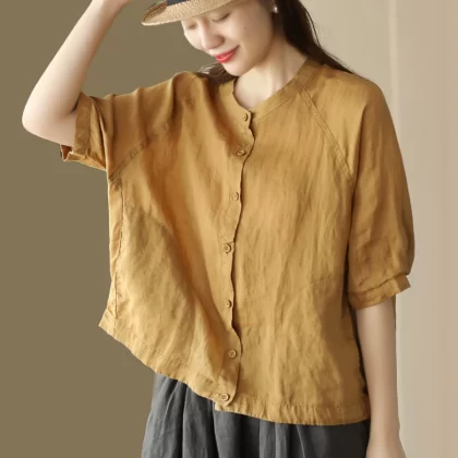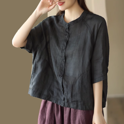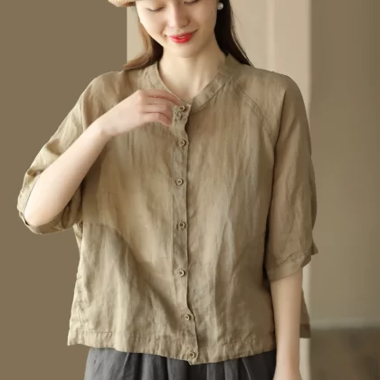 | nameOriginal | Retro solid color ramie top women's summer thin loose casual cardigan shirt temperament versatile cotton linen shirt |