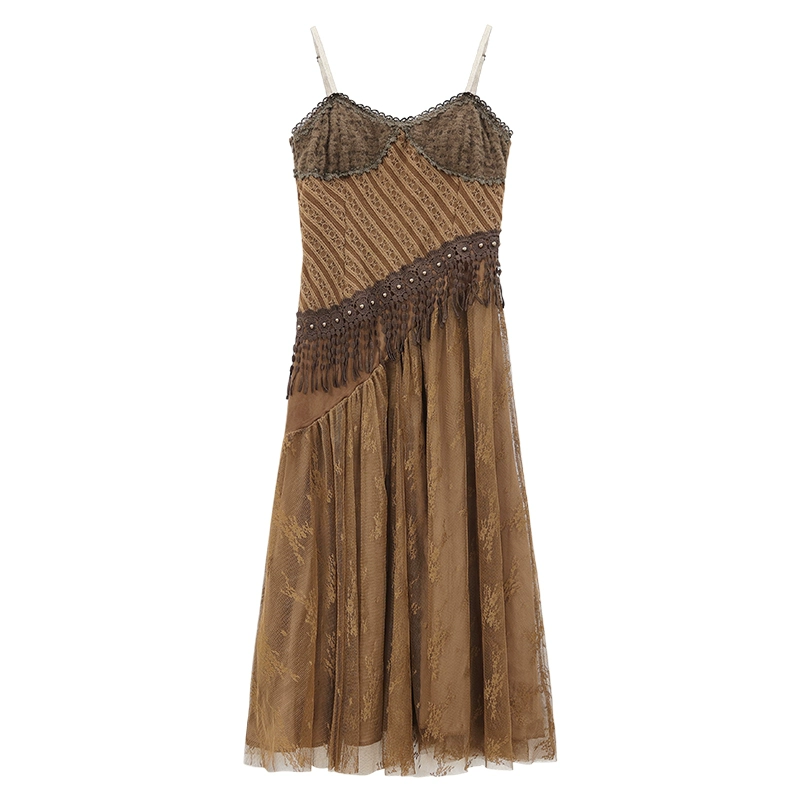 | nameOriginal | Retro summer spliced fringed A-line suspender dress |