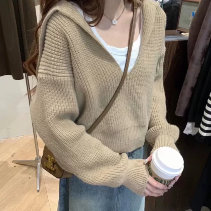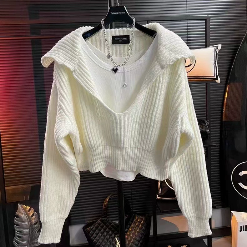 | nameOriginal | Retro v-neck high-waisted short sweater for fall and winter outer wear |