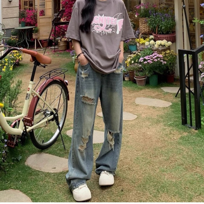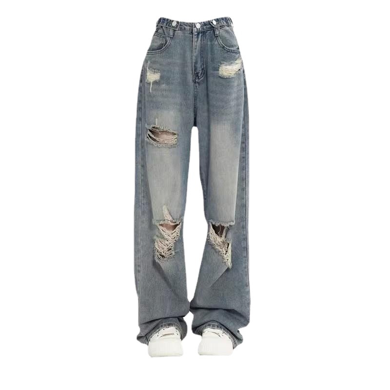 | nameOriginal | Retro Wide Leg Ripped Jeans Women's Spring and Autumn 2024 New plus size chubby girl Loose Slim Straight Pants |