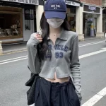 Retro zipper inner slim fit top ins long sleeve T-shirt