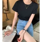 Ribbed knitted front shoulder solid color slimming short-sleeved T-shirt
