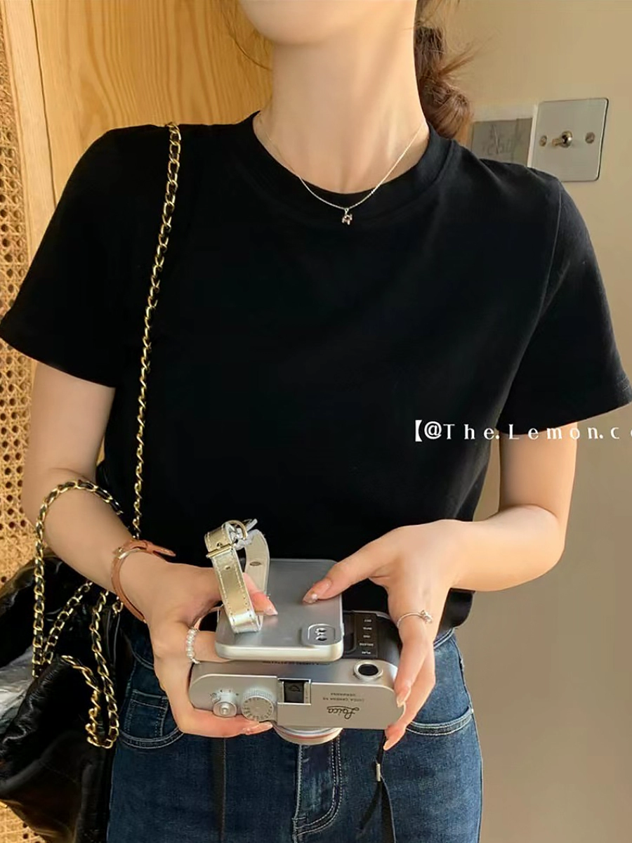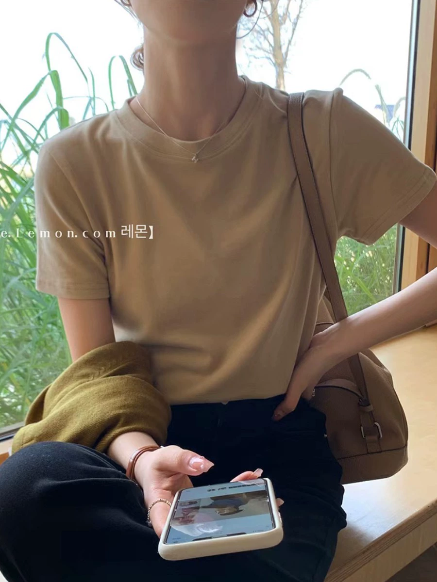 | nameOriginal | Right shoulder round neck with early spring solid color short-sleeved T-shirt |
