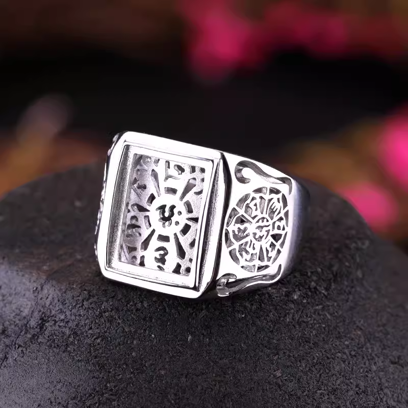 Ring setting S925 sterling silver ring empty setting inlaid with beeswax jade jade gemstone ring surface silver ornaments silver setting 9*10 8*8