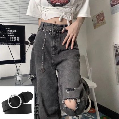 | nameOriginal | Ripped Jeans Women's Spring and Autumn New High Street Retro Loose Slimming High Waist Straight Wide Leg Long Pants Ins Trendy |