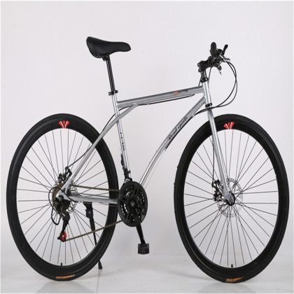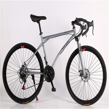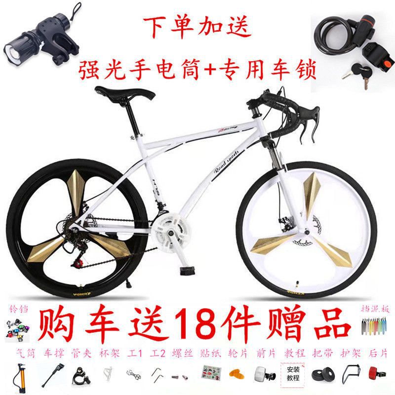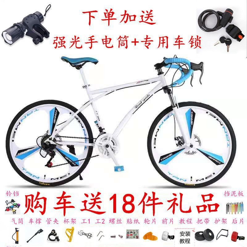 Road Variable Speed Bicycle Men's Double Disc Brake Curved Handle Fluorescent Shock Absorption Student Women's Solid Tire Lightweight Race Dead Flying Bicycle