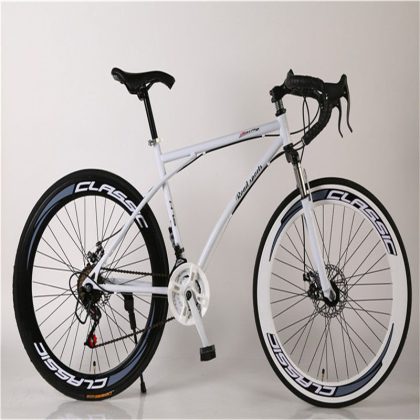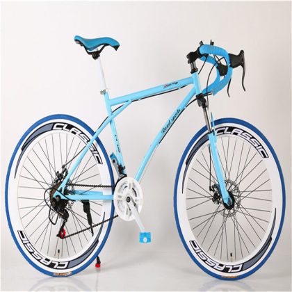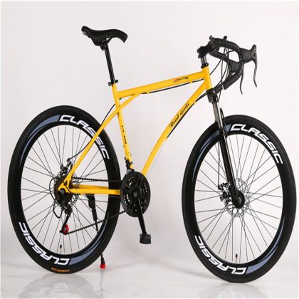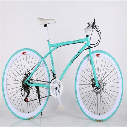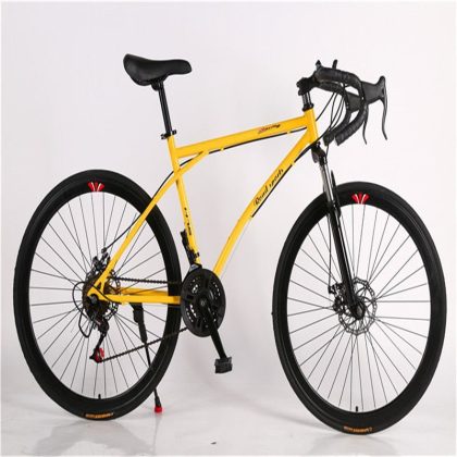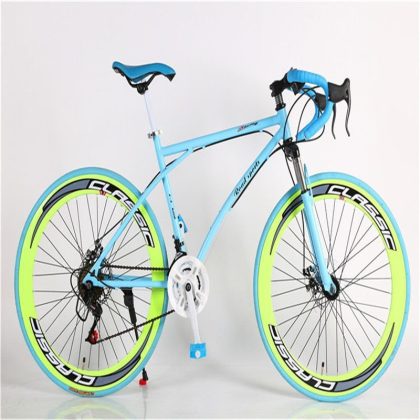 الطريق متغيرة السرعة دراجة رجالية قرص مزدوج الفرامل منحني مقبض الفلورسنت امتصاص الصدمات طالب المرأة الصلبة الإطارات خفيفة الوزن سباق الميت الطائر دراجة