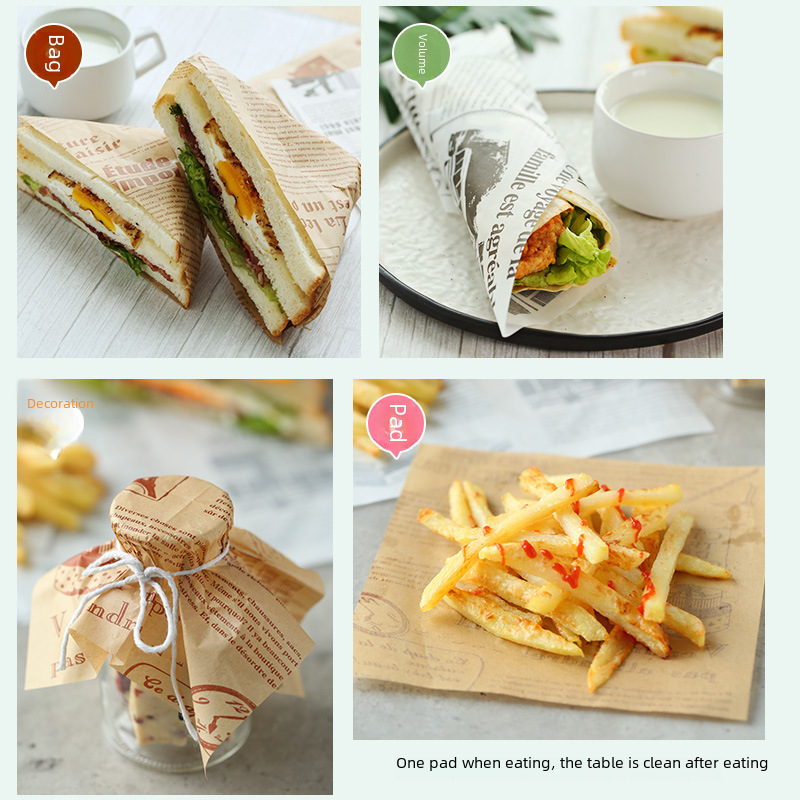 | nameOriginal | Roasted Le Shi Dining Plate Paper Chicken Roll Sandwich Wrapping Paper Dining Plate Paper Disposable Greased Paper 100/500 |