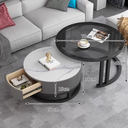 مزيج من الألواح الصخرية من زجاج الطاولة المستديرة الراقية
