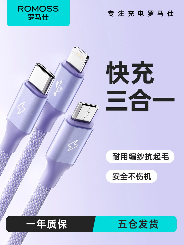 | nameOriginal | Romans one-to-three multi-head car Android data cable |