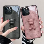 Rose pink leopard print bear suitable for iphone13promax mobile phone case 15 new style 14 apple 13pro trendy brand 12mini couple x high-end 11 internet celebrity xsmax hot model female 8plus anti-fall xr