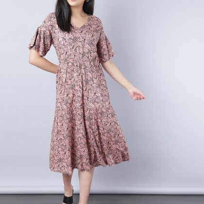 | nameOriginal | Short Sleeve Midi Dress Rose Pink AOP |