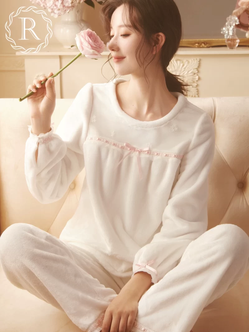 nameOriginal | RoseTree coral velvet pajamas women's autumn and winter pullover plush flannel thickened velvet home clothes winter |