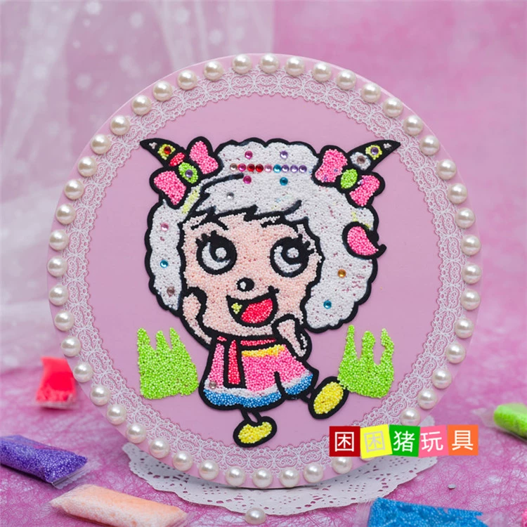 Round eva snowflake mud pearl mud clay painting photo frame table children diy handmade coloring educational toys