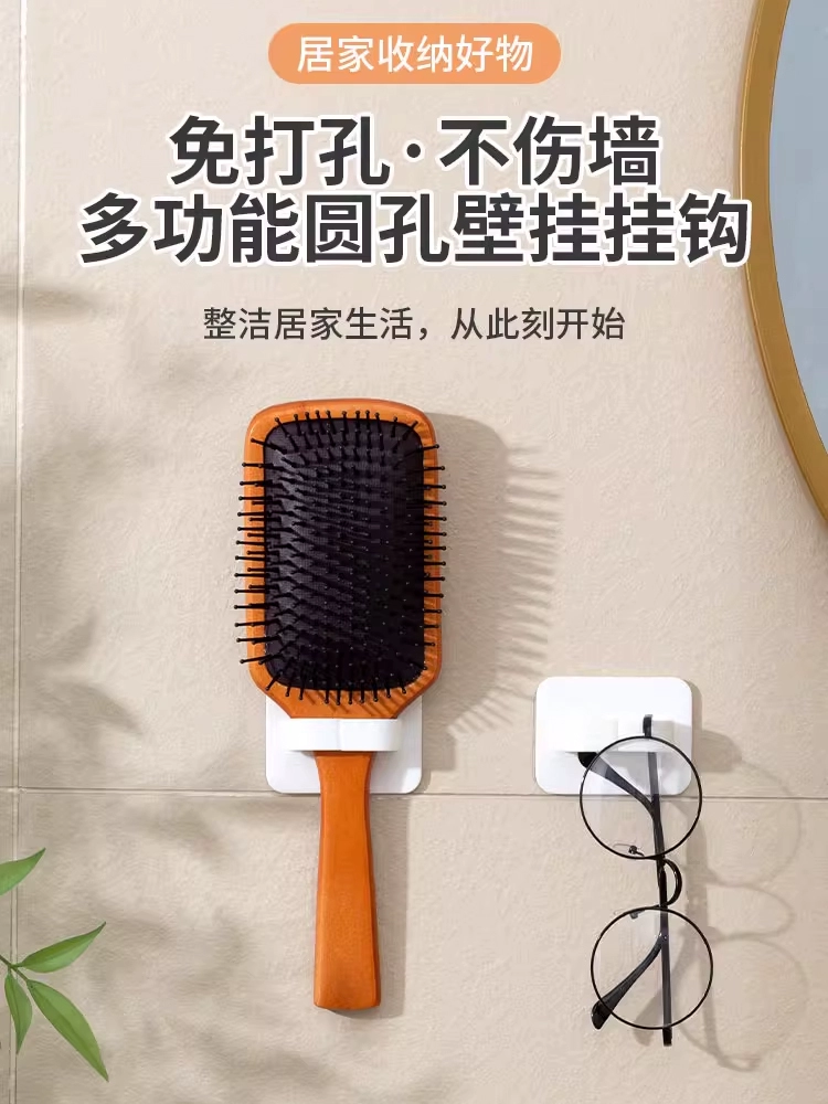 | nameOriginal | Round hole wall hanging nail-free ring hook sticky hook comb glasses multi-functional storage ring sticker seamless adhesive hanger |