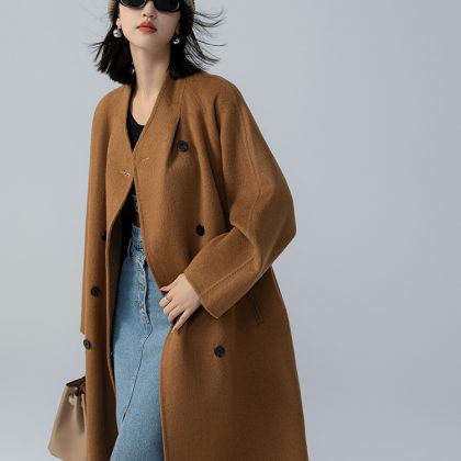 | nameOriginal | Round neck double-sided wool coat women's long loose Korean style Alashan camel coat autumn and winter New woolen coat |