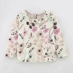 Round neck ruffled autumn floral top long-sleeved T-shirt