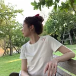 | nameOriginal | Round neck short sleeve women's summer loose cotton bow print |