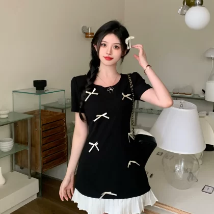 | nameOriginal | Round neck women's summer Hepburn style fat MM pleated dress |