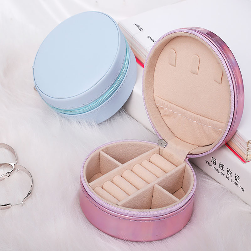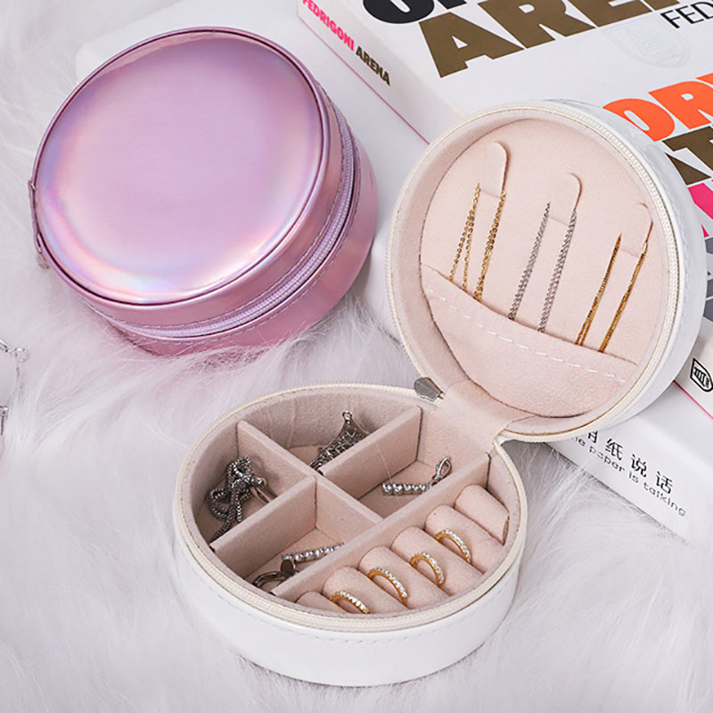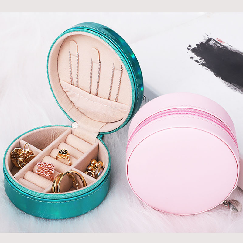 | nameOriginal | Round portable PU leather cosmetic box earrings earrings necklace jewelry storage box multi-compartment large capacity lipstick bag |