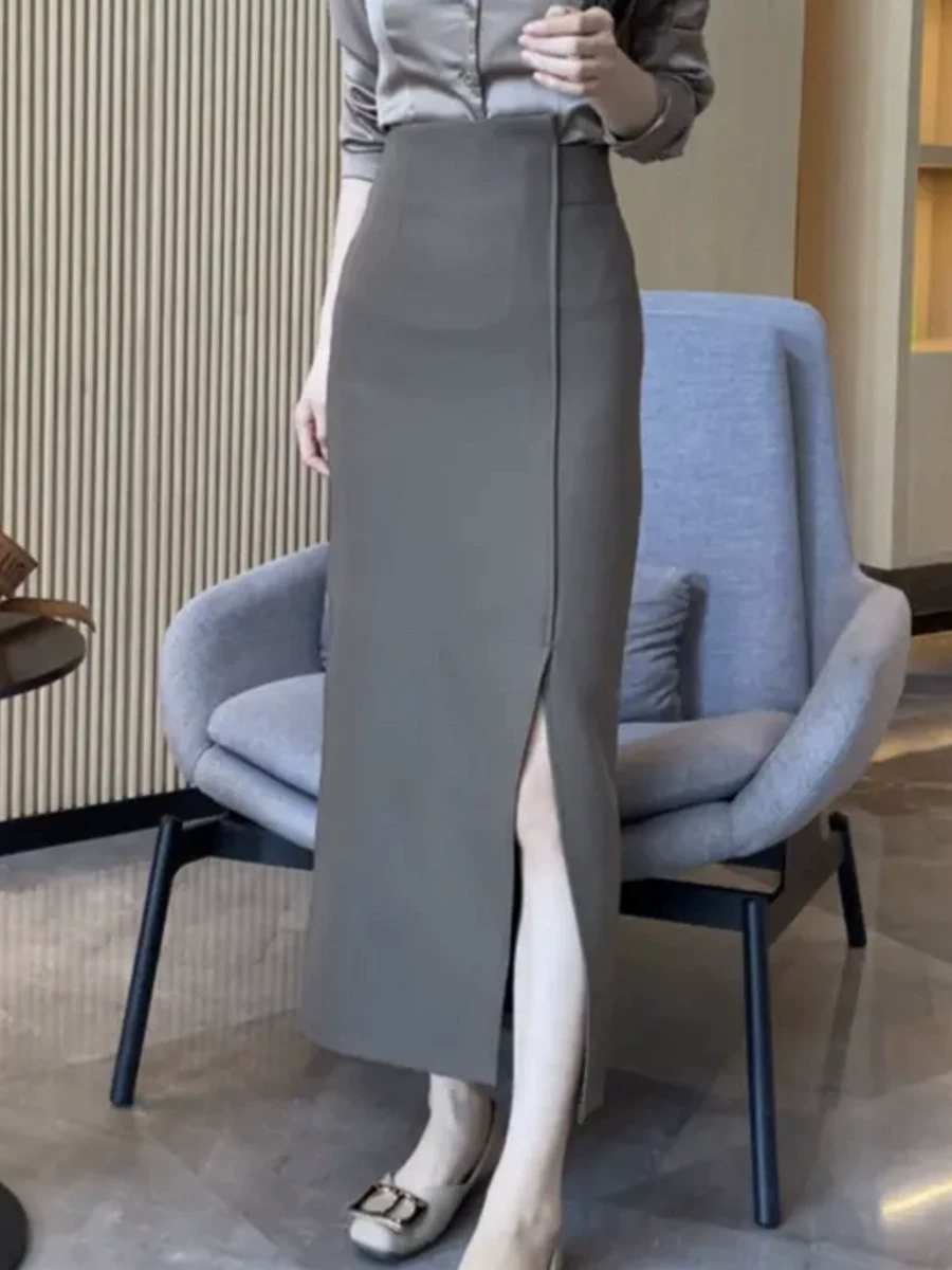 | nameOriginal | Royal sister style v-neck buttoned side slit skirt satin |
