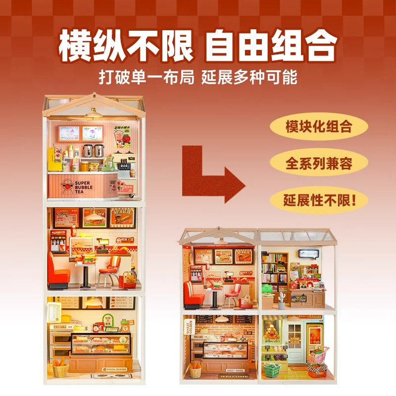 | nameOriginal | Ruojorai Super World Store Living Room diy Cabin Building Blocks Handmade Assembled Model House Toy Gift |