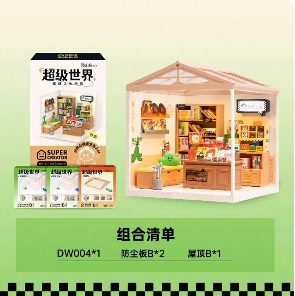| nameOriginal | Ruolai Super World Milk Tea Shop DIY Hut Puzzle Assembling Building Blocks Toy Miniature Scene Children's Day Gift |