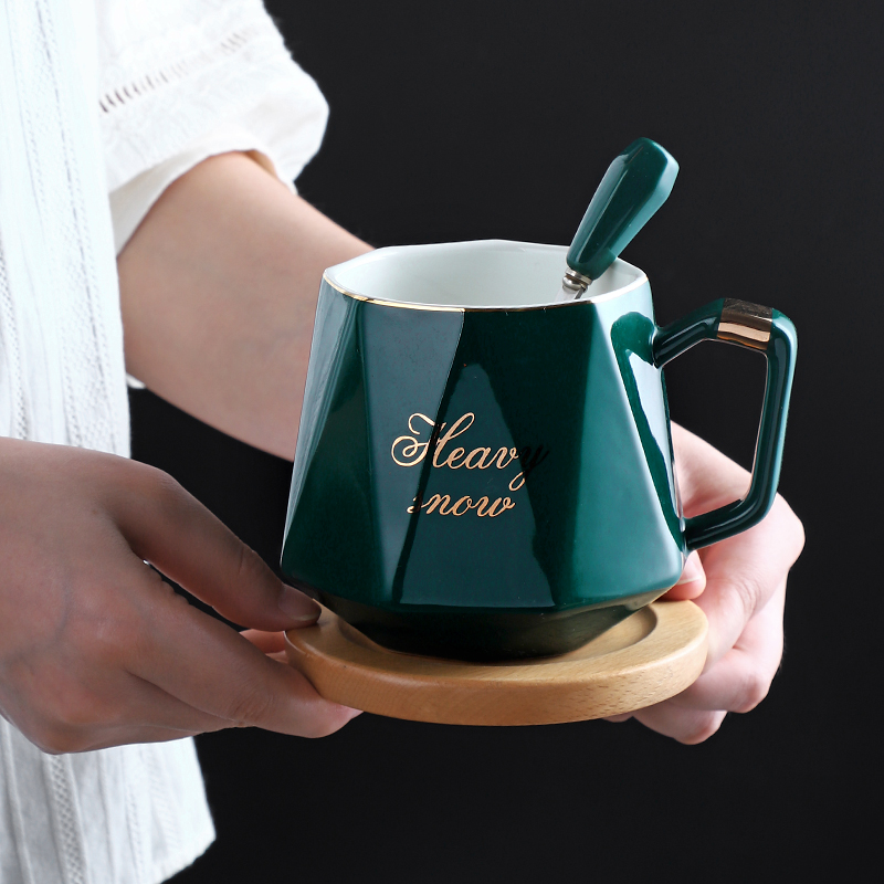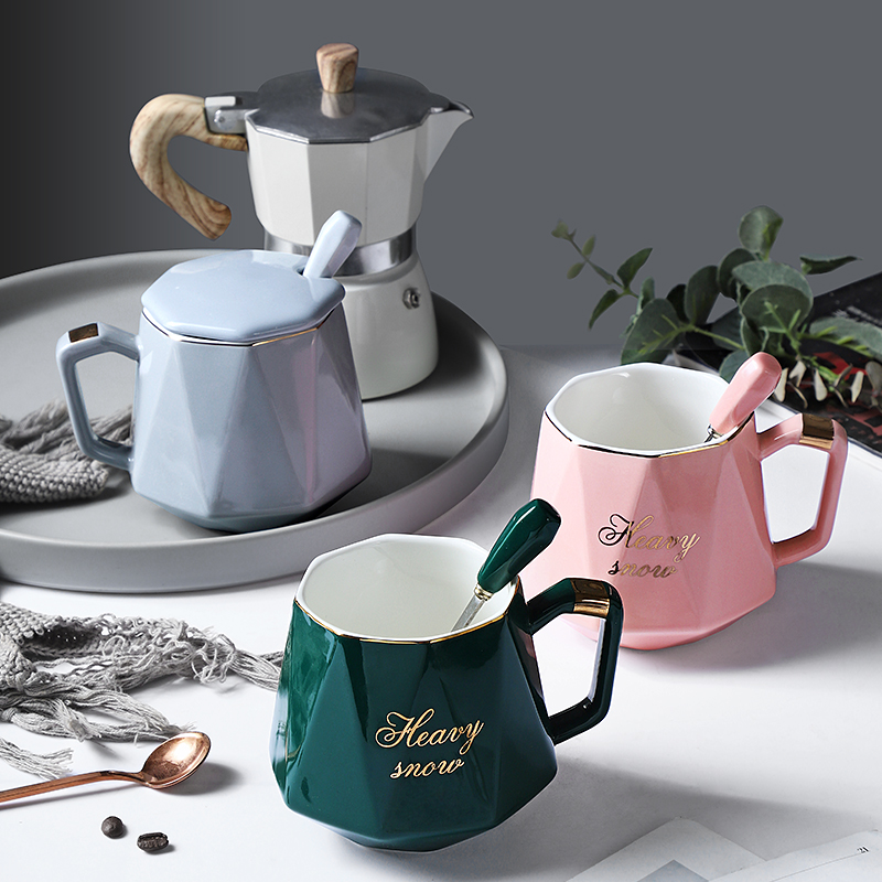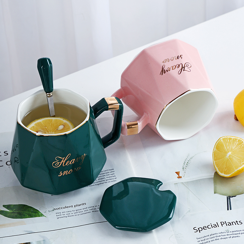 S228 Cup Ceramic Mug with Lid and Spoon Household Drinking Cup Women's Large Capacity Office Coffee Cup Couple's