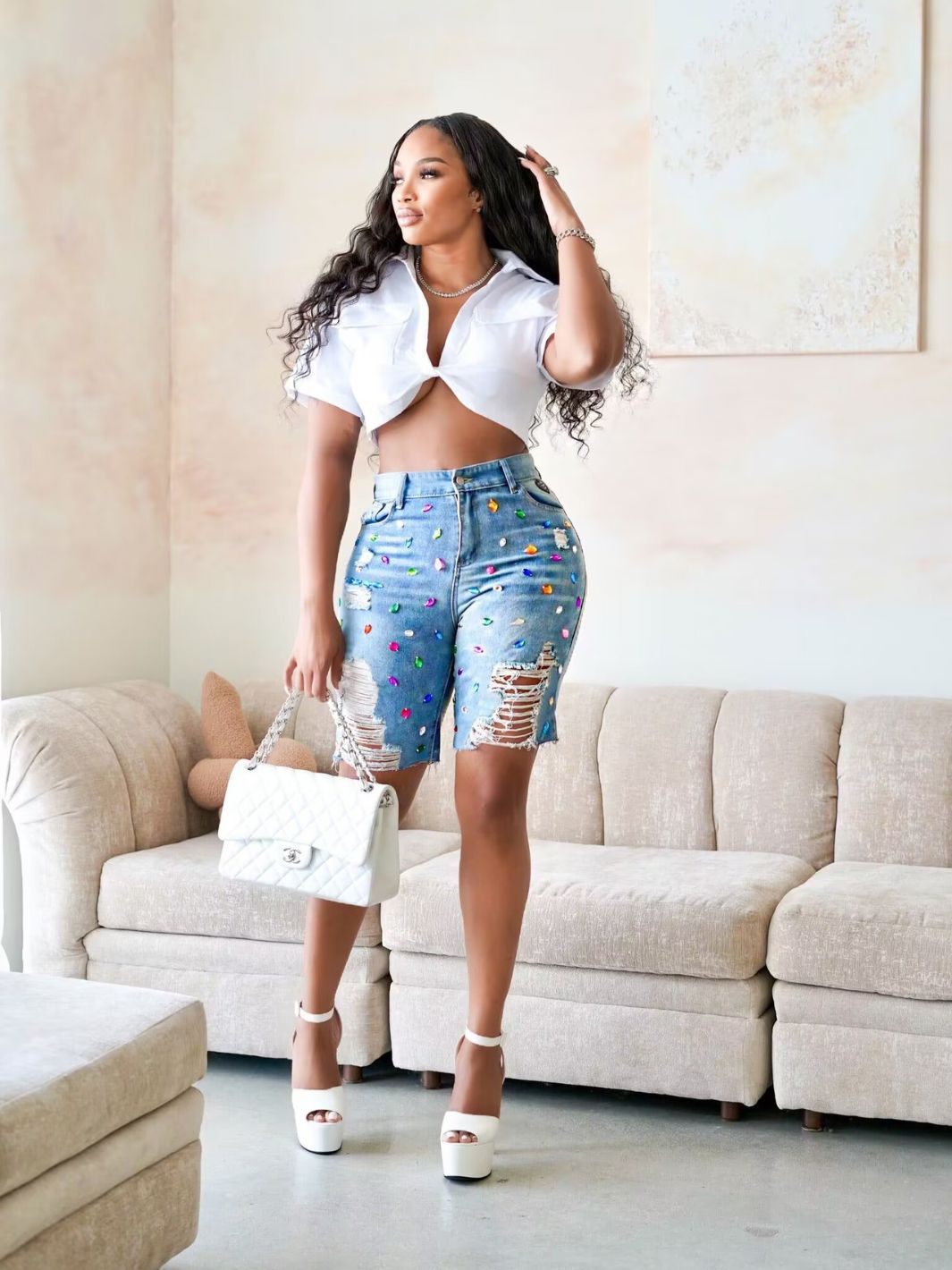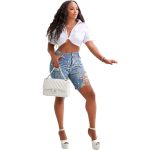 S390713 شورت صيفي مطبوع على الموضة الأوروبية والأمريكية للنساء