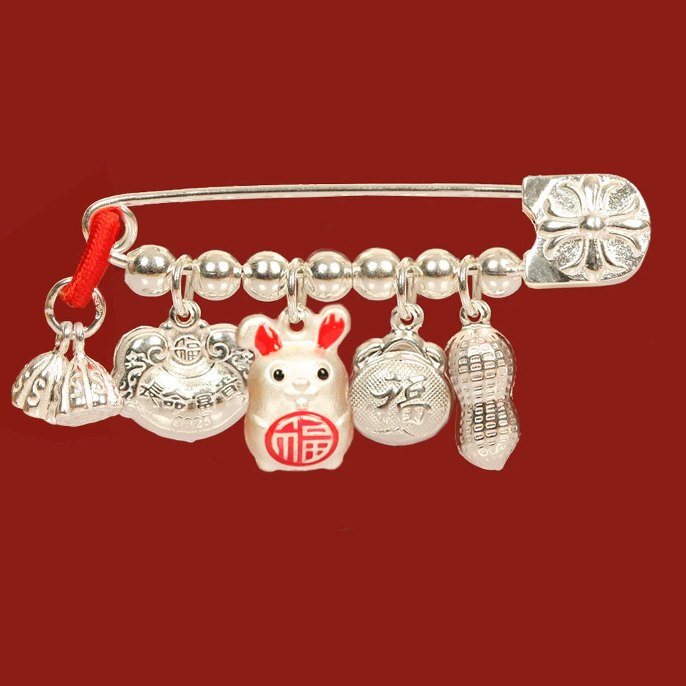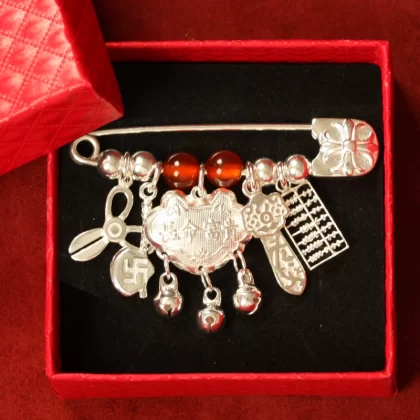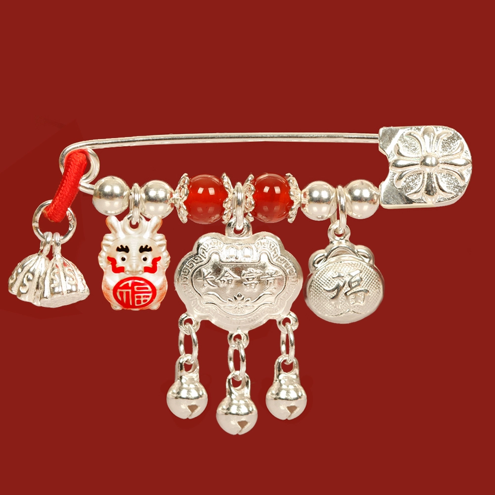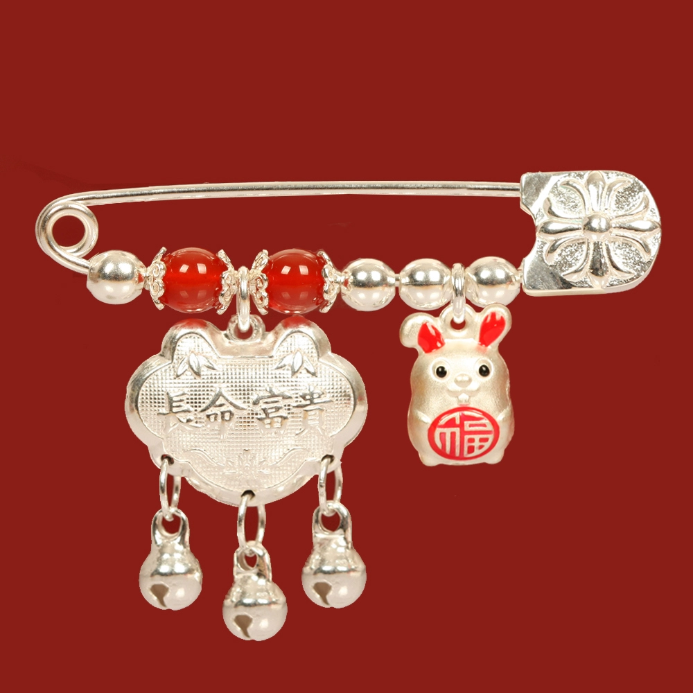 | nameOriginal | S925 Pregnant and baby longevity lock cinnabar safety pin |