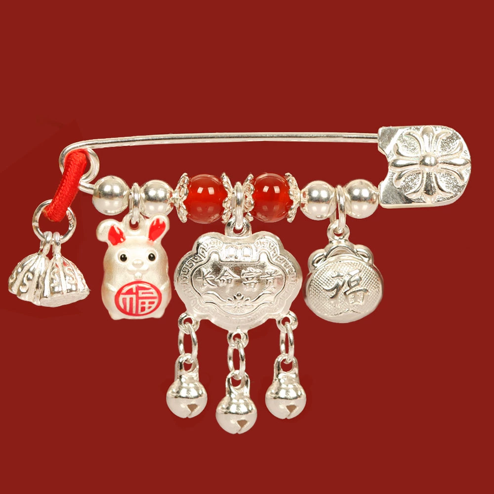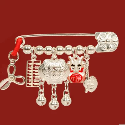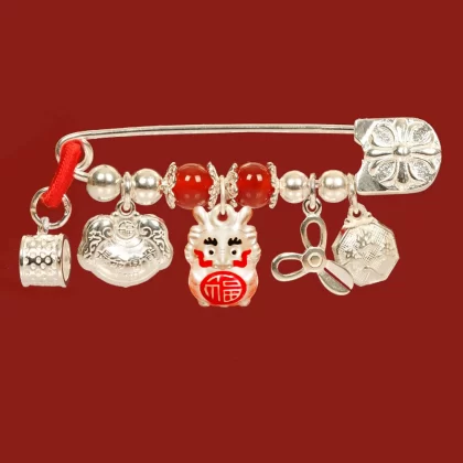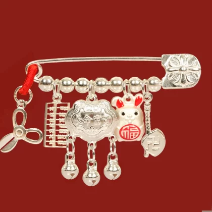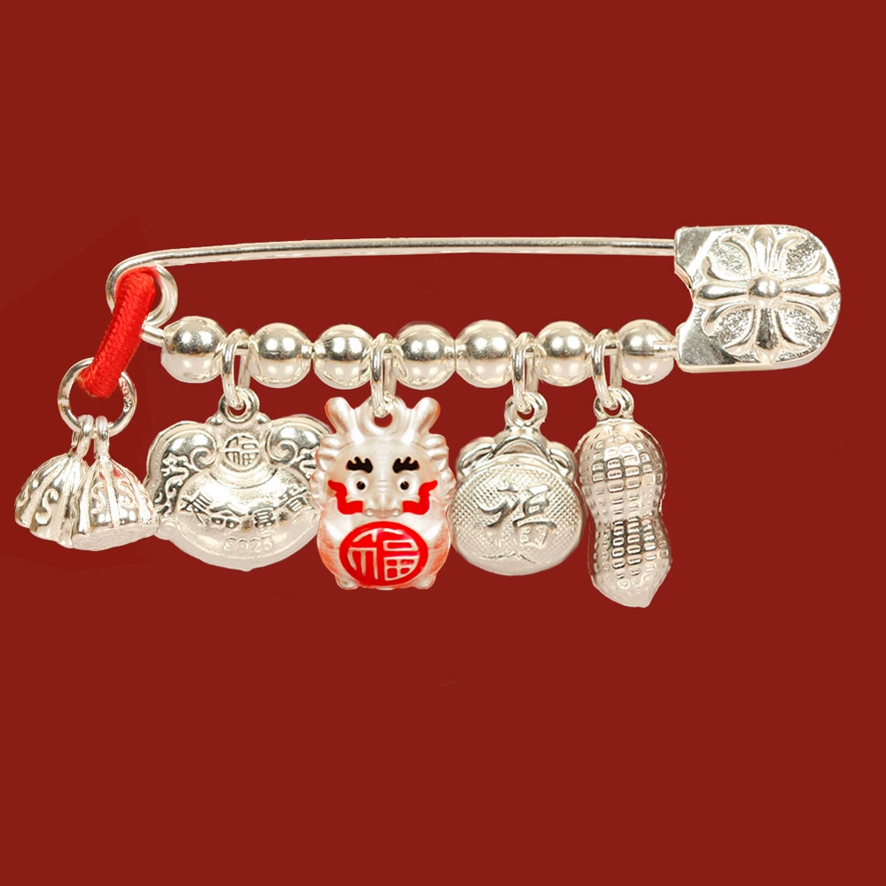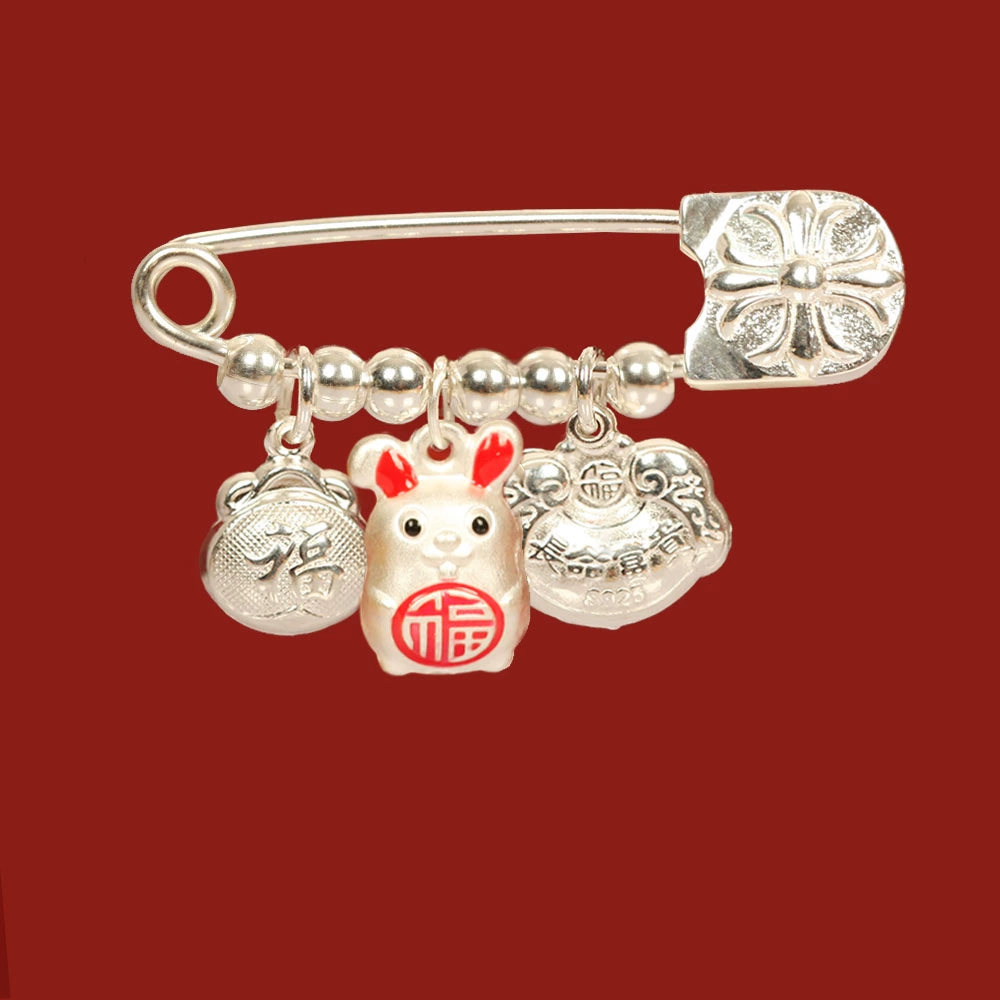 | nameOriginal | S925 Pregnant and baby longevity lock cinnabar safety pin |