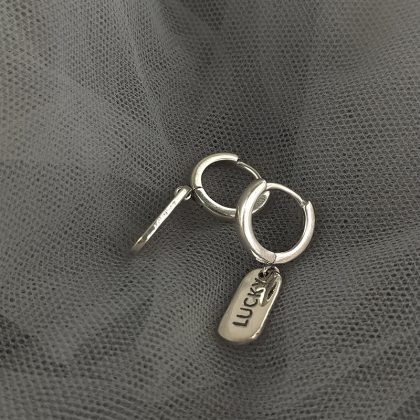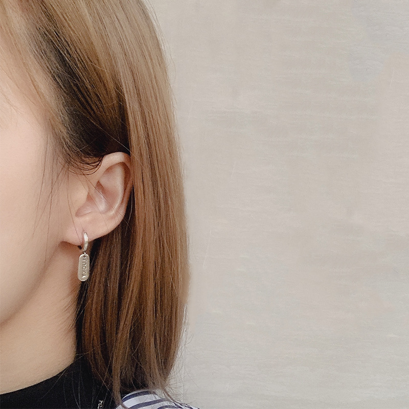 S925 Silver Korean Style Distinctive lucky Square Brand Letter Earrings Women's Fashion Simple All-match Student Ear Buckle ins Trendy