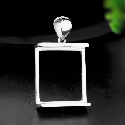 S925 silver pendant empty support couple necklace pendant inlaid with jade turquoise jade square brand 19.5*19.7