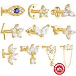 S925 Sterling Silver Horse Eye Diamond Crown Double-sided Wear Cartilage Thread Puncture Ear Nail European and American New Earrings for Women