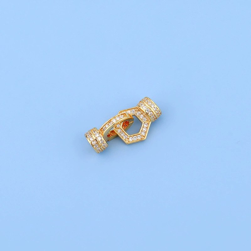 | nameOriginal | S925 sterling silver micro-embellished diamond three-dimensional hexagonal pearl buckle necklace buckle diy handmade beaded chain finishing buckle |